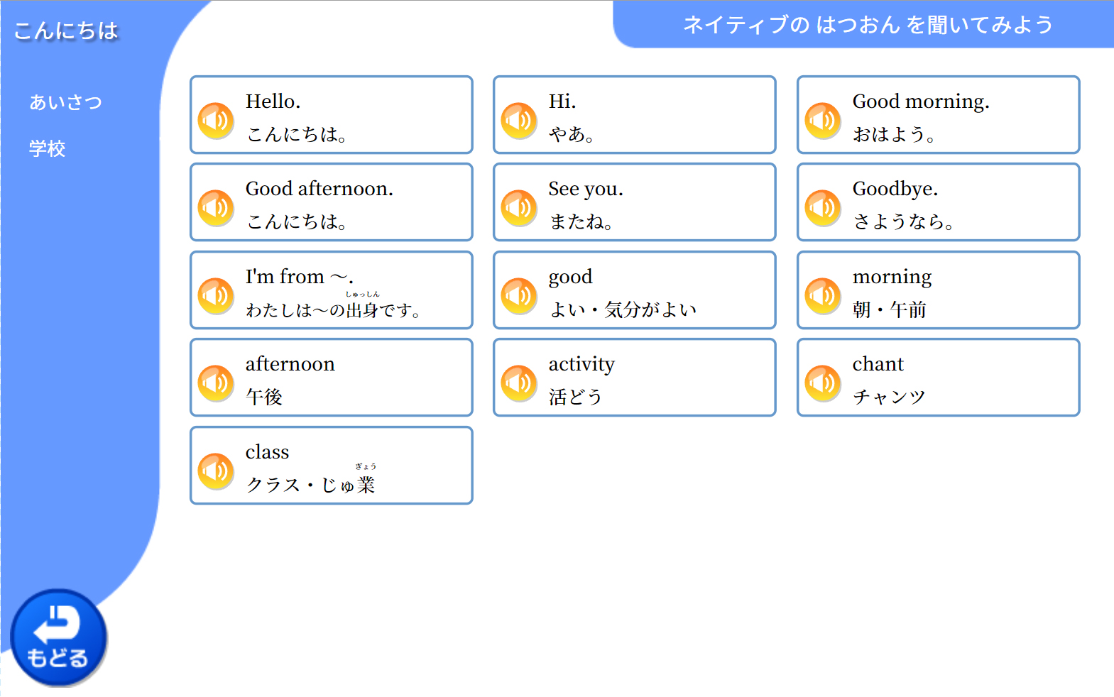 リスニング中心の英単語学習を追加収録。各単元ごとに単語から発声・発音を覚えるパートと、リスニングから単語を答えるパートがあり、ネイティブ音声を多数収録。早いうちからネイティブの発音に慣れ親しむことができます。